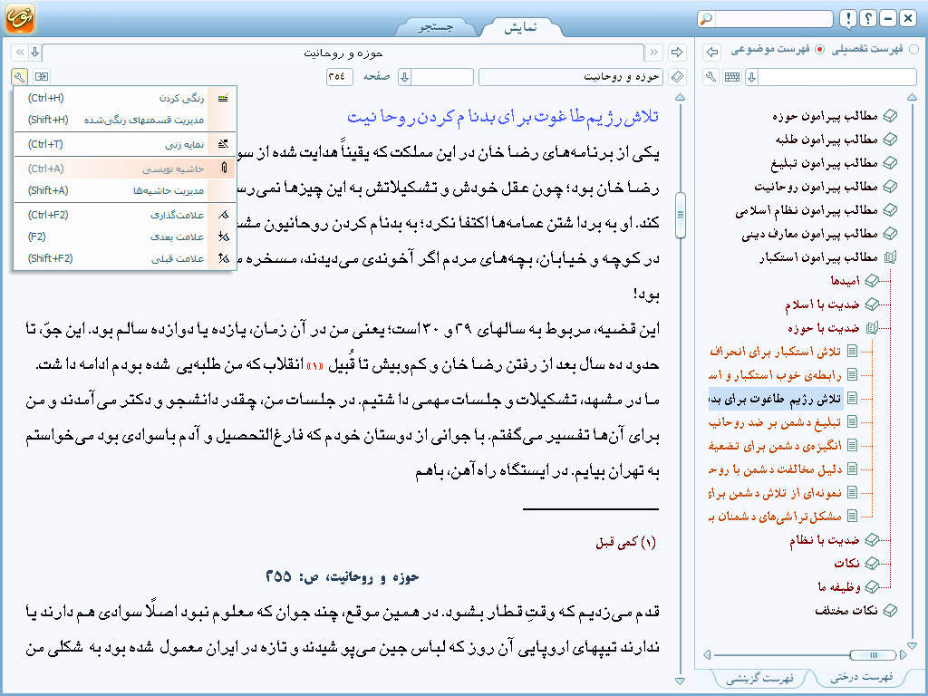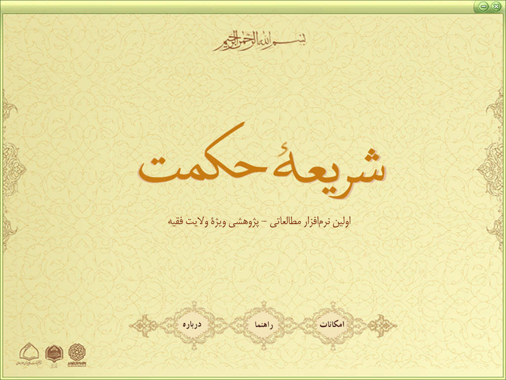 • شریعه حکمت اولین نرم افزار آموزشی – مطالعاتی ویژه (ولایت فقیه) با بهره گیری از جدیدترین تکنیک های بر نامه نویسی با هدف اجرای ساده و کاربری آسان و استاندارد نرم افزار.
